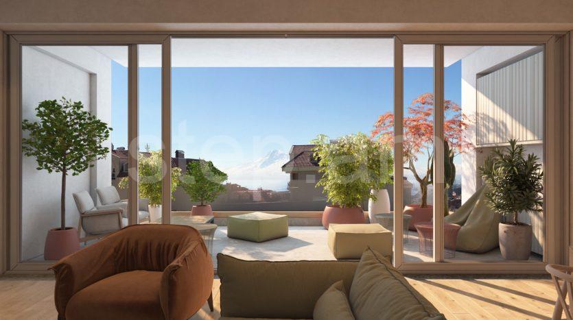This nice apartment offers modern renovation and furniture, 2 bedrooms, one of which with separate bathroom. The sunny large living room has access to the beautiful terrace, where you can admire with the view of Yerevan center and Mount Ararat.