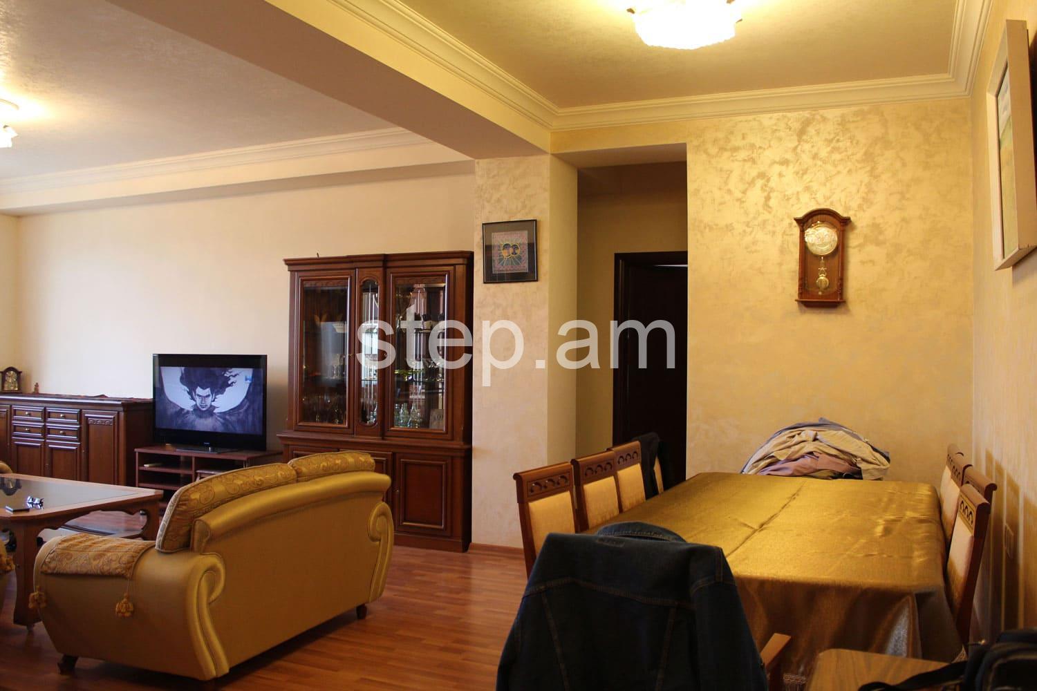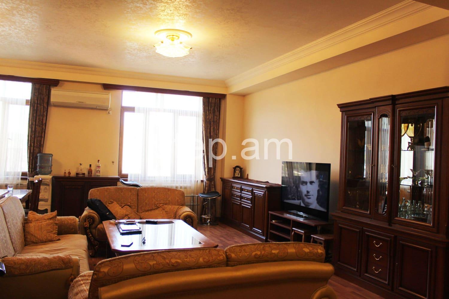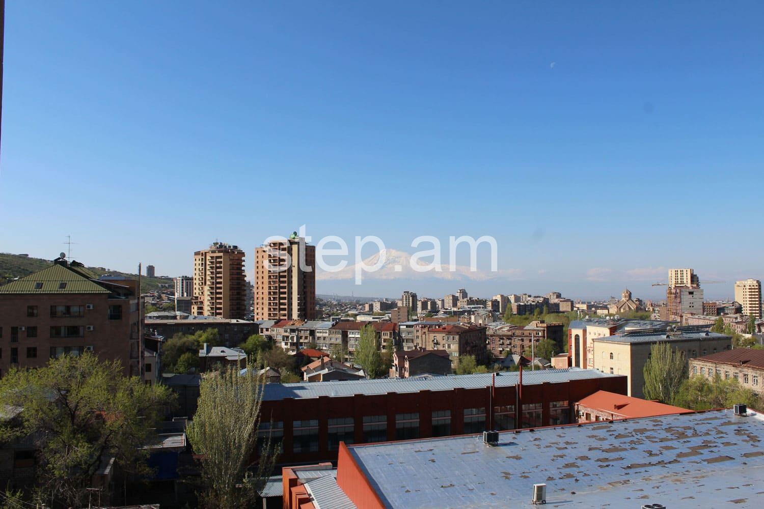 The 6th floor apartment features a spacious living room, 2 bedrooms and a bright kitchen. The whole apartment is sun-drenched. Full quality renovation and furnishing include wooden doors, parquet floor, built-in kitchen furniture. There is a balcony overlooking mount Ararat and Yerevan center.