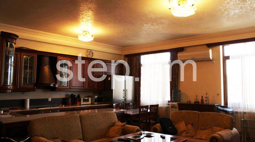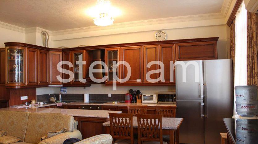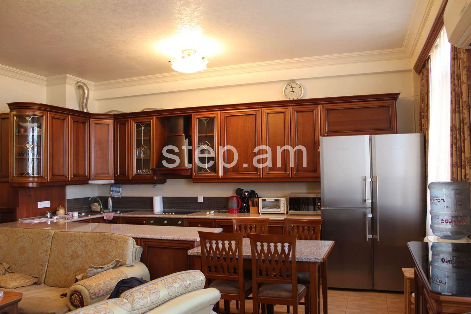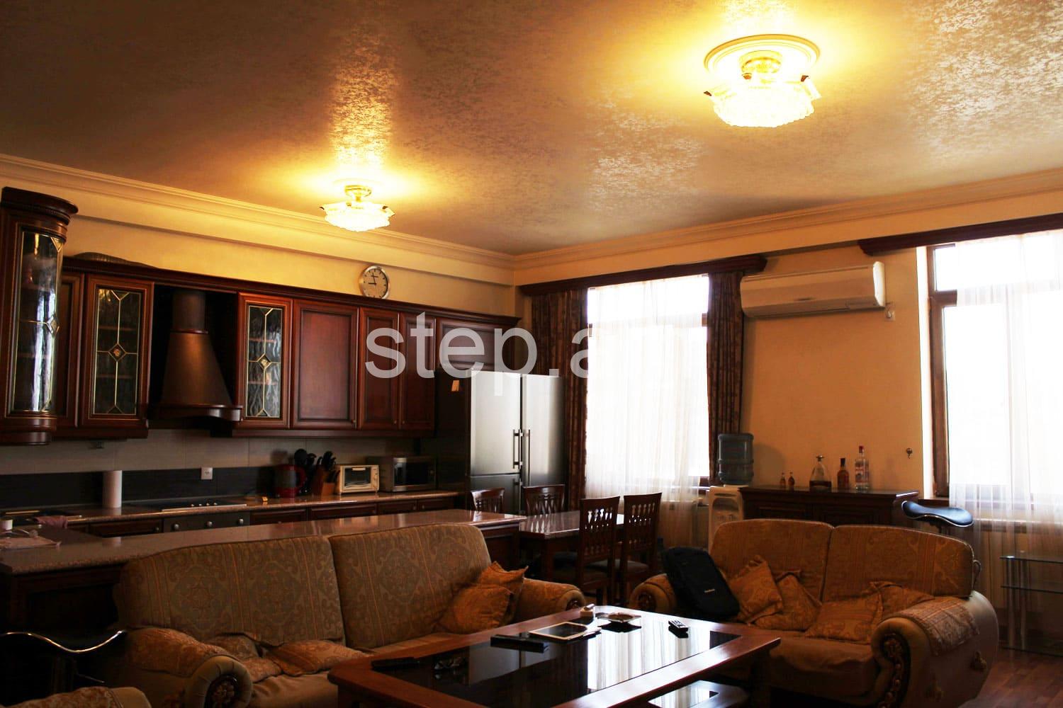 The 6th floor apartment features a spacious living room, 2 bedrooms and a bright kitchen. The whole apartment is sun-drenched. Full quality renovation and furnishing include wooden doors, parquet floor, built-in kitchen furniture. There is a balcony overlooking mount Ararat and Yerevan center.