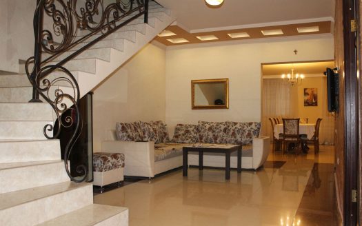 Gorgeous 4-storey villa is located in one of the most popular regions in Yerevan: Arabkir. The quiet street is a kilometer away from the main highway of the city. The highway connects Yerevan center with Komitas Street and other parts of the city. The house a large well-groomed plot with an open pool with water filtering system, fireplace and gazebo in it. Also you will find fruit trees, thujas and rose bushes here. The whole territory is fenced with a stone wall.